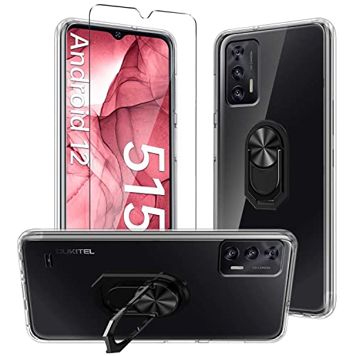 JDXHFF Cover Compatibile con Oukitel C31 (6.52") Trasparente e Staffa Girevole a 360° e Pellicola Protettiva in Vetro Temperato - Custodia Morbido Silicone Protettivo TPU Case Clear