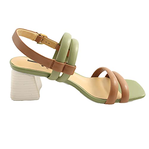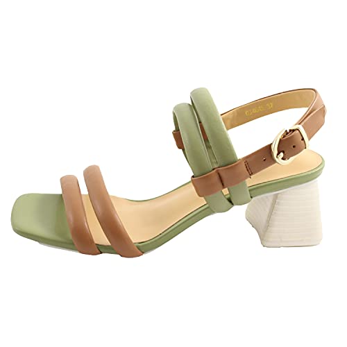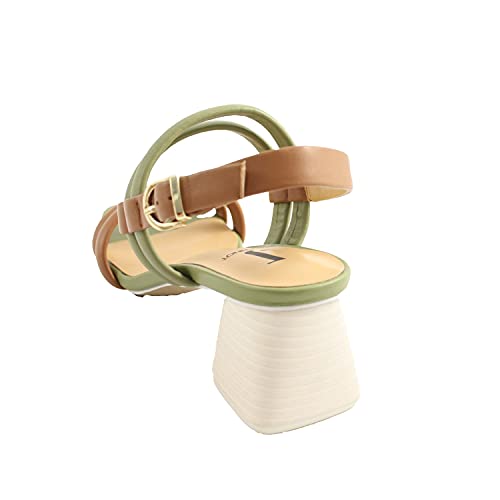 JEANNOT Sandali donna pelle marrone cuoio e verde con stringhe. Chiusura con cinturino alla caviglia. Tacco blocchetto da 6,5cm. Prodotto Made in Italy. 37