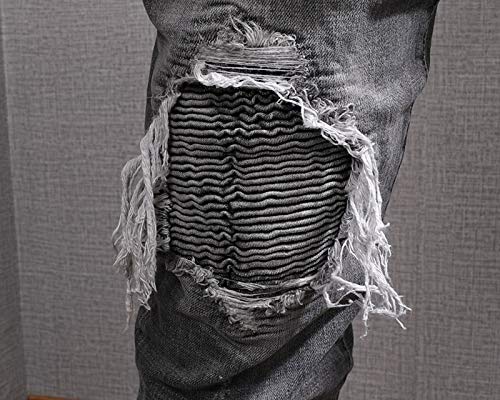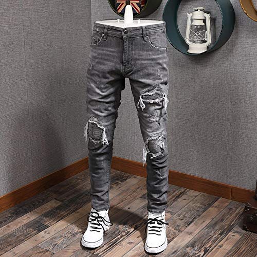 Jeans American Streetwear Moda Uomo Jeans Retro Grigio Lavaggio Slim Fit Elastico Strappato Jeans Uomo Patch Designer Jeans Hip Hop Homme 33