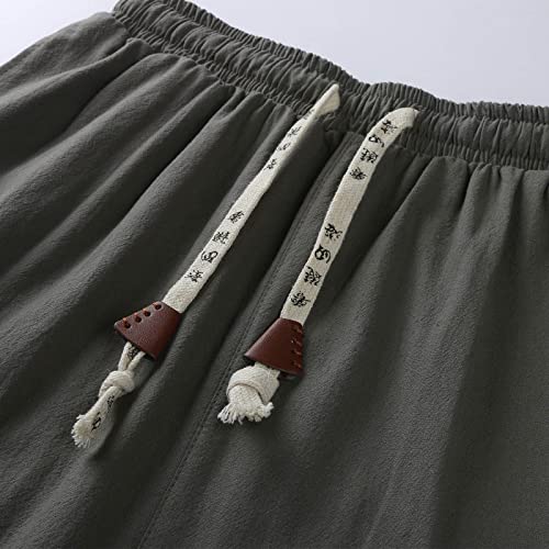 Jeans Uomo Estivi Leggerissimi Pantaloni con Tasche Pantaloni da Uomo in Cotone con Coulisse Elastica Vita Media Pantaloni Casual da Uomo in Lino Solido Casual Pantaloni Neri Cargo