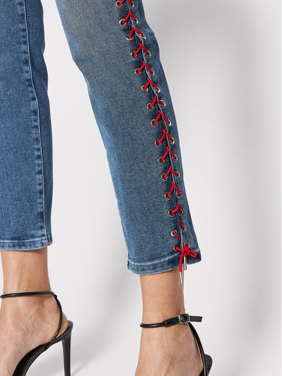 Jeans Girlfriend Denim W/ Lacing 91KW1801 Blu Slim Fit