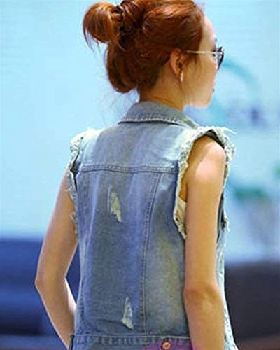 Jeans Jacket Donna Smanicato Bavero Strappato Gilet Jeans Eleganti Vintage Moda Casuale Grazioso Slim Fit Primaverile Autunno Denim Gilet Cappotto Corto Stlie (Color: Blau, Size: S)