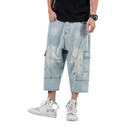 Jeans Larghi da Uomo Cuciture Patchwork Fori Strappati Bordo strappato Pantaloni di Jeans ritagliati lavati retrò Distrutti Tutte Le Taglie 29