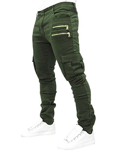 Quge Jeans Pantaloni Uomo Stile Biker Cargo Pantalone Militari con Multi Tasche Verde M
