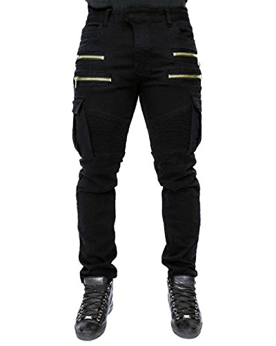 Quge Jeans Pantaloni Uomo Stile Biker Cargo Pantalone Militari con Multi Tasche Nero S