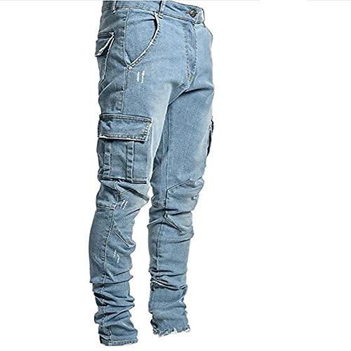 LKHJ Jeans Men Pants Casual Cotone Cotone Denim Pantaloni Multi Pocket Cargo Jeans Uomo Denim Pantaloni a Matita Pantaloni Laterali Tasche Laterali Carico-Un_m