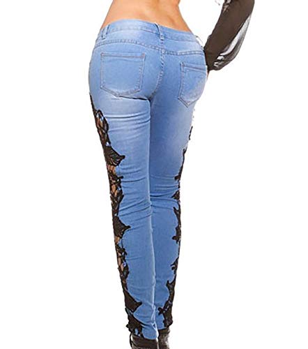 Jeans Skinny Pizzo Donna Vita Alta Pantaloni Jeans Donne Elasticizzati Fit Jean Donna Denim Jeans Leggins Attillati Taglie Forti Donna High Waist Leggings Jeans Aderenti Lunghi Femminili Azzurro XS