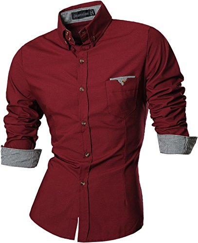 Jeansian 8312 - Camicia casual alla moda, da uomo, slim fit Z019a_winered M