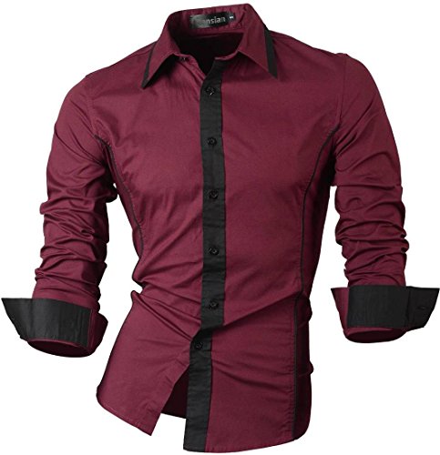 Jeansian Uomo Camicie Casual Classiche Manica Lunga Slim Fit Men Shirts 8015 Winered L