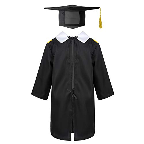 JEATHA Toga Laurea e Tocco Cappello Laurea Unisex Costume Laureato Studente Abito di Laurea a Maniche Lunghe Studentessa Uniforme Scolastica Bambino Travestimento Laurea Giallo 8-10 Anni