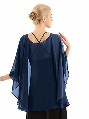 JEATHA Scialle Coprispalle Elegante Donna in Chiffon Scialli Donna Estivo Da Cerimonia Matrimonio Sposa Nuziale Abito Vintage Comunione Tinta Unita A Blu scuro Taglia unica