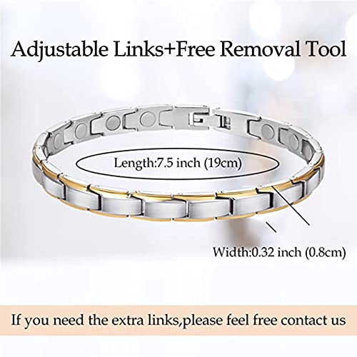 Jecanori Bracciale magnetico da donna in acciaio al titanio con magneti 3500 Guass ultra resistenti, dimensioni regolabili con strumento di rimozione e confezione regalo, Acciaio inossidabile