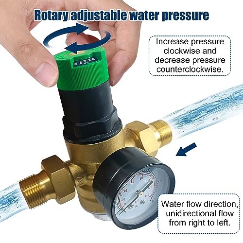 Materiali di Alta Qualità: Riduttore di pressione acqua è realizzato in ottone di alta qualità, sicura e affidabile, resistente alla compressione e alle alte temperature, pratico risparmiando tempo.