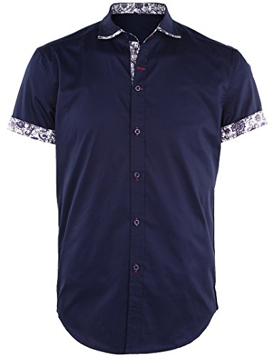 JEETOO Camicia a Maniche Corte da Uomo Camicia Elegante con Stampa Floreale Camicia Casual(Marine,L)