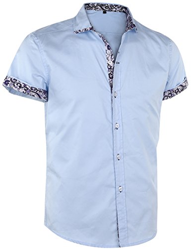 JEETOO Camicia a Maniche Corte da Uomo Camicia Elegante con Stampa Floreale Camicia Casual(Cielo Blu,S)