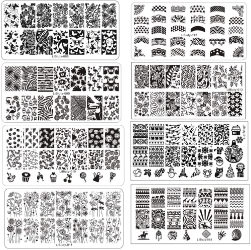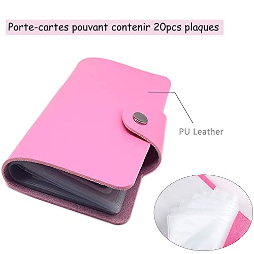 JEEWHEET Set di Nail Art Stamping 15pcs Nail Template Piastra per Unghie, Raschietto, Silicone Nail Art Stamper Portacarte Rosa per Manicure Decorazioni per Unghie