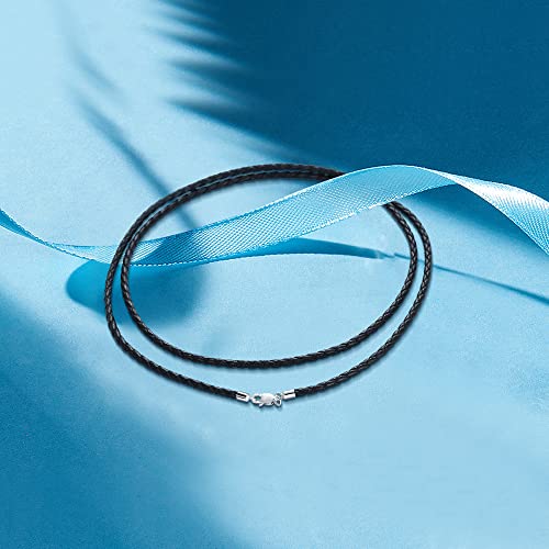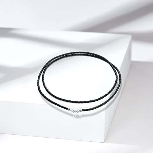 JEEXUM Collana con cordino in pelle nera ossa, catena con chiusura in argento sterling lunghezza 16", 18", 20", 22", 24" per uomo donna (24, Nero)