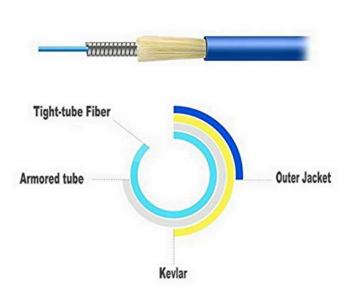 40 metri (100 piedi), Armoured, LSZH, Zip-Cord rinforzato, duplex (2 fili in fibra), puntale in ceramica da 1,25 mm, LC/PC a LC/PC, cavo patch in fibra/cavo di ponticello.