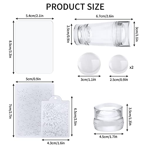 【Materiale di alta qualità】 I timbri per unghie sono realizzati in silicone trasparente, che è morbido ed elastico e possono facilmente toccare la maggior parte dei bordi curvi delle unghie, e 2 pezzi di timbri per unghie in silicone trasparente sono progettati con una copertura, che può prevenire efficacemente polvere e inquinamento