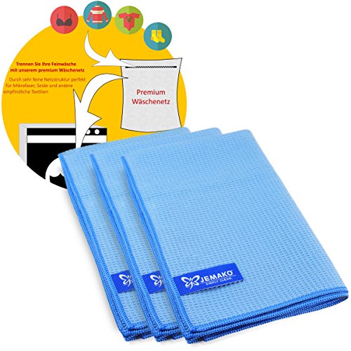 Jemako - Set di 3 strofinacci medi 45 x 60 cm con inclusoun sacchetto in rete per lavaggio Blau