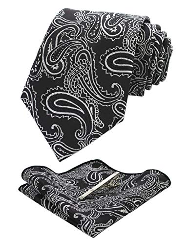 JEMYGINS Cravatta Uomo Nero in Seta Paisley Design in Diversi Colori cena di gala con Fazzoletto e Fermacravatta