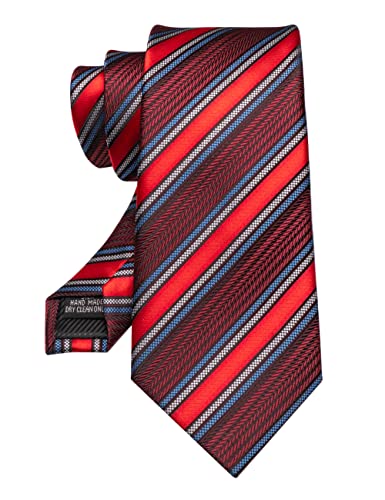 JEMYGINS Cravatta da uomo a quadri a righe Strisce rosse e blu a righe Include un set di fermacravatta per fazzoletti da taschino