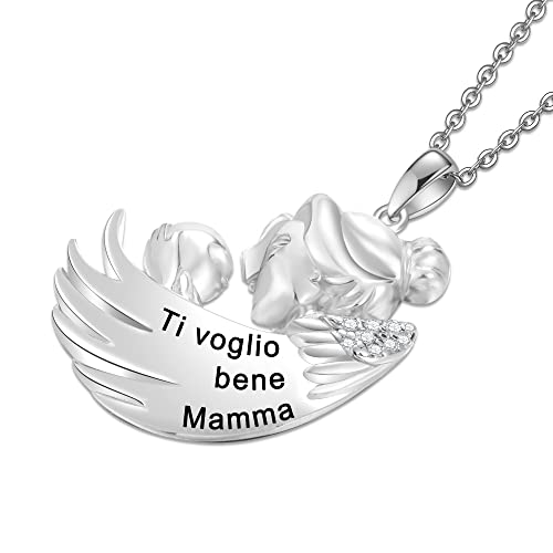 JENABET Collana Donna Argento 925 Ciondolo Ali d'angelo con Incisione Regalo per Madre Figlia Famiglia Natale Compleanno Festa della Mamma