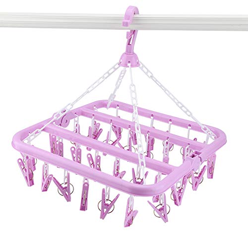 Jenngaoo 32 Clips Stendibiancheria Pieghevole Appendiabiti in Plastica Antivento Calzini Biancheria Intima Stendibiancheria per Bambini Adulti Appendiabiti Pieghevole(Viola)