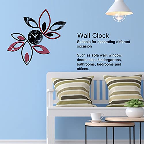 Jenngaoo Orologio da Parete 3D Fai da Te, Orologio Moderno con Specchio a Forma di Loto per La Decorazione di Arte della Parete del Fondo del Soggiorno della Cucina di Casa Home(Nero+Rosso)
