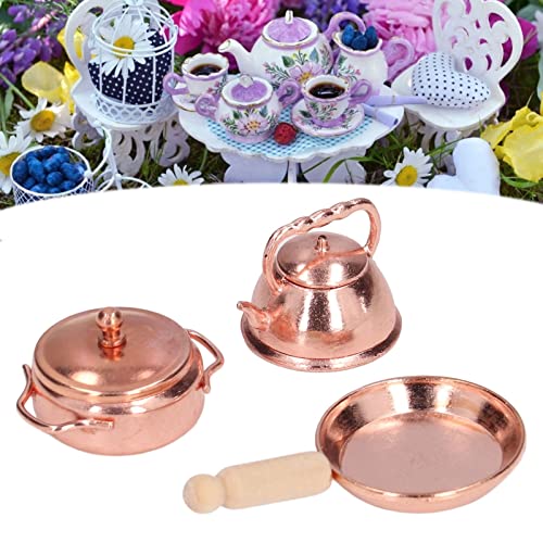 Jenngaoo 3 Pezzi Set di Padelle Giocattolo, 1/12 Miniatura Casa delle Bambole Bronzo Padella Pentola Bollitore Cucina Kit da Cucina Pentole da Cucina per Bambini di età Superiore a 3 Anni