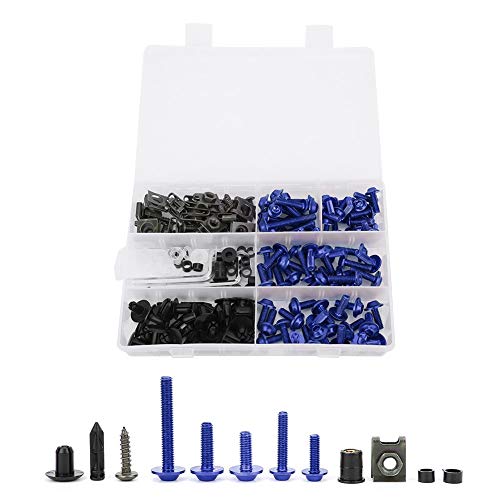 Jenngaoo 198 Pz/Set Kit Bulloni per Carenatura, Kit Bulloni per Carenatura Universale per Moto Viti Elementi di Fissaggio Kit di Montaggio per Carrozzeria Rondelle Dadi Viti Clip Assortimento(Blu)