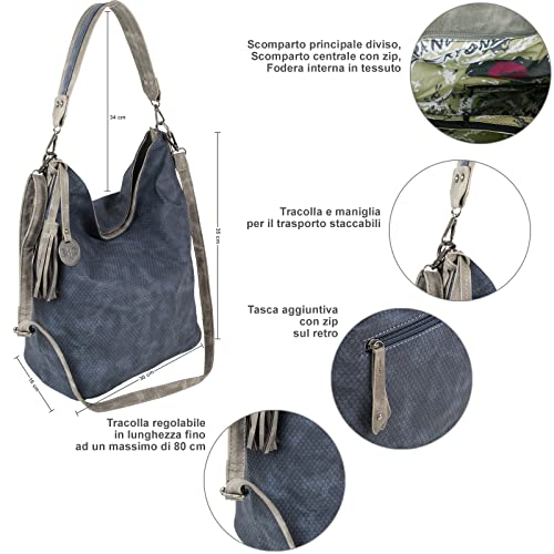 Jennifer Jones - Borsa a tracolla elegante anche come borsa a tracolla, Blu (Blu) - 3127