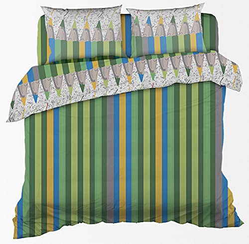 Jenny Sesal Set completo letto stampato Matitone, 100% cotone - singolo, matrimoniale, una piazza e mezza (Verde, Matrimoniale)