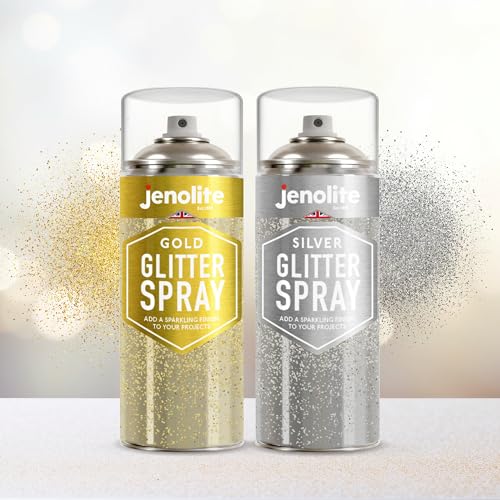 JENOLITE Sigillante trasparente spray glitterato, confezione doppia | ORO E ARGENTO | Lacca trasparente con glitter fine | Adatto per la maggior parte delle superfici | 2 x 400 ml