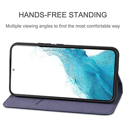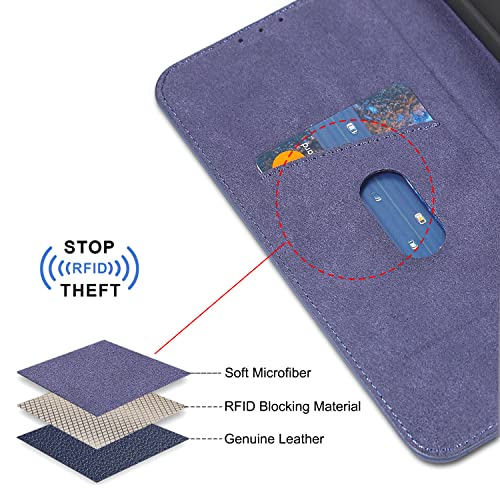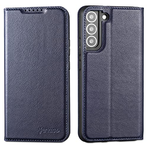 Jenuos Cover per Samsung Galaxy S22 5G/4G, Libro Custodia [RFID Blocking] Vera Pelle Portafoglio con Magnetica Chiusa Folio Cuoio Flip Case per Samsung Galaxy S22 5G/4G - Blu (S22-YD-DE)