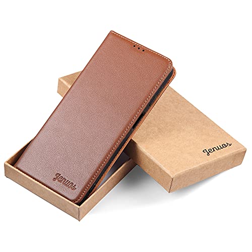 Jenuos Cover per Xiaomi Redmi Note 10 Pro/Note 10 Pro MAX, Libro Custodia Flip Portafoglio in Vera Pelle [RFID Blocking] con Magnetica Chiusa Folio cuoio per Redmi Note 10 Pro-Marrone (MN10P-PD-BN)
