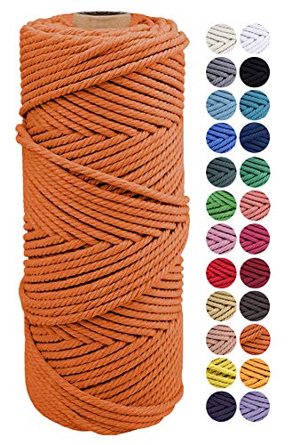 JeogYong Corda di Cotone Naturale Macrame, 4 Fili di Spesso Filato Corda di Macrame per Arazzi, Appendini per Piante, Artigianato Fai da Te, Decorazioni, Confezioni Regalo 2mm x 100m (Arancione)