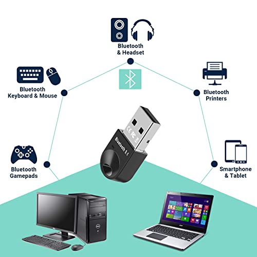 [Adattatore Bluetooth 5.1] - Adotta l'ultimo chipset Bluetooth 5.1 ed è retrocompatibile con V5.0 / 4.0 / 3.0 / 2.1 / 2.0. che possono aggiornare il computer senza la funzione Bluetooth, la velocità di trasmissione è fino a 3 Mbps.