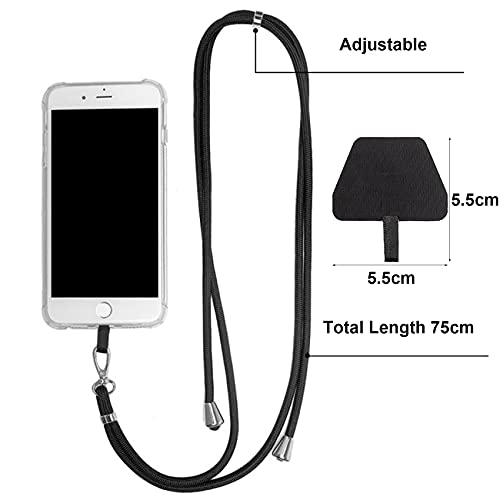 JeoPoom Cordini per Telefono, Universali, Cordino per Telefono, Cordino con Cuscinetti, Regolabile Lunghezza, per Maggior parte di Telefoni Intelligenti(Nero)