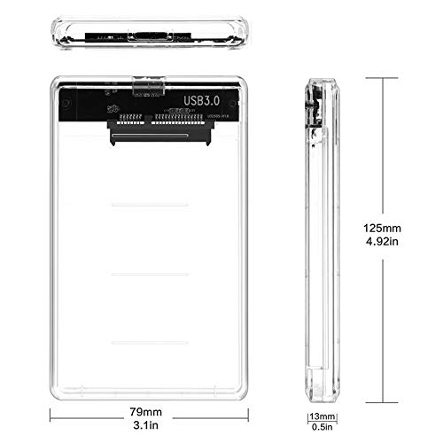 JeoPoom Case Hard Disk 2.5 Pollici, Case Esterno per Disco Rigido USB 3.0 a SATA I/II/III, Custodia per Disco Rigido HDD SDD con UASP e Cavo USB3.0 40CM, per 7mm e 9,5 mm, Tool Free, Trasparente