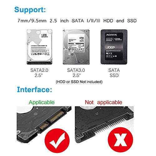 [Taglia applicabile] - Supporta tutti i 2.5 '' HDD SSD SATA I / II / III, compatibile con i dischi rigidi con spessore da 7 mm a 9,5 mm.