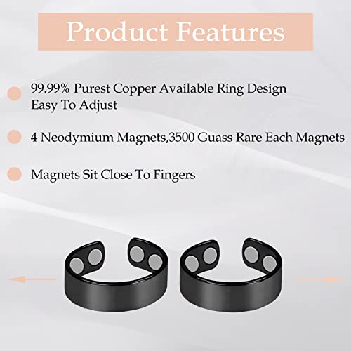 Jeracol Anelli magnetici per drenaggio linfatico in rame per uomo e donna, 2 anelli magnetici in puro rame con quattro forti magneti, anelli regolabili in rame con confezione regalo, Titanio Pelle Acciaio inossidabile Rame