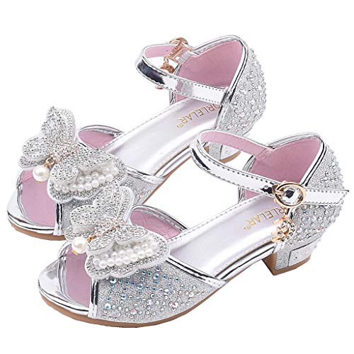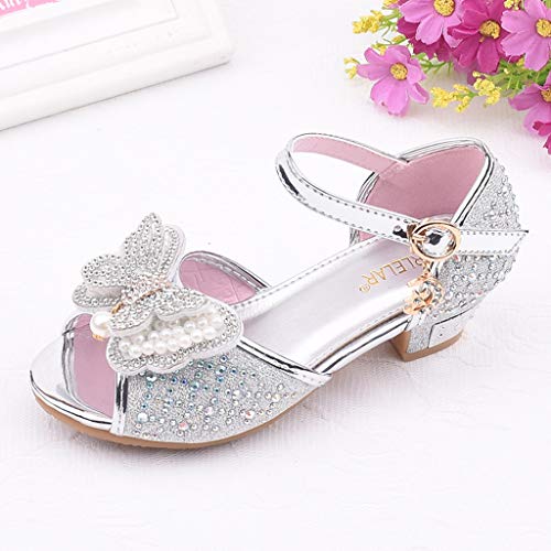 JERFER Toddler Bambini Ragazze Perla Farfalla-Knot Cristallo Singola Principessa Scarpe Sandali