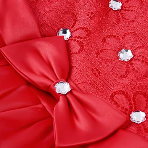 JerrisApparel Fiore Vestito Elegante Bambina Cerimonia Abito Senza Maniche (6 Anni, Rosso)