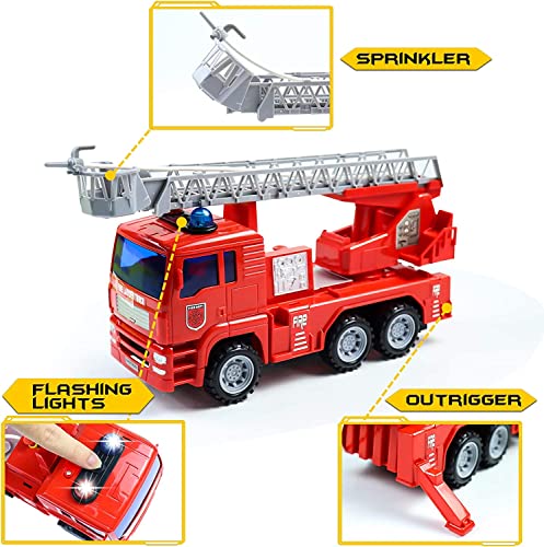 Nuovo Pompieri Giocattolo: La macchinine giocattolo per bambini ha la funzione di spruzzare acqua per aumentare il divertimento del gioco. La scala retrattile e la piattaforma di sollevamento girevole, coltivano l'abilità di mani fini.