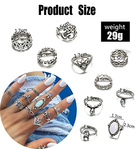 Design in stile bohémien: un gran numero di anelli vintage ti fa sembrare affascinante, gli anelli impilabili hanno varie dimensioni in modo da poterli indossare su tutte le dita.
