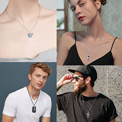 Dimensioni: La dimensione del ciondolo dell'urna della farfalla è 19,4 mm*25,2 mm (0,78 pollici*0,98 pollici).La lunghezza della catena solida O è 50cm+5cm (19 pollici+1,96 pollici). Peso totale: 0,32 oz.La dimensione della dogtag e di un'urna apribile: 4.8cm*2.8cm(1.8"x1.1"). Dimensioni del ciondolo a croce: 3,4cmx1,7cm (1,33 "x 0,67");