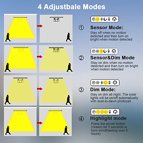 【4 Modalità Regolabili】: ① Modalità di induzione a infrarossi: tenere spento quando non viene rilevato alcun movimento e luce quando viene rilevato un movimento;