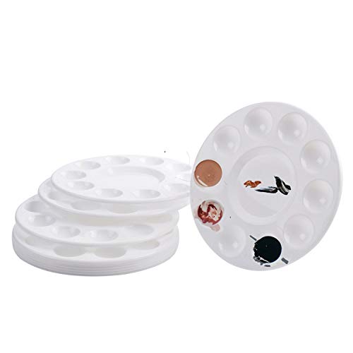 Jespeker - Tavolozza dei colori, in plastica, forma rotonda, per pittura ad acquerello e a olio, diametro 17 cm, confezione da 10, colore: bianco