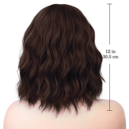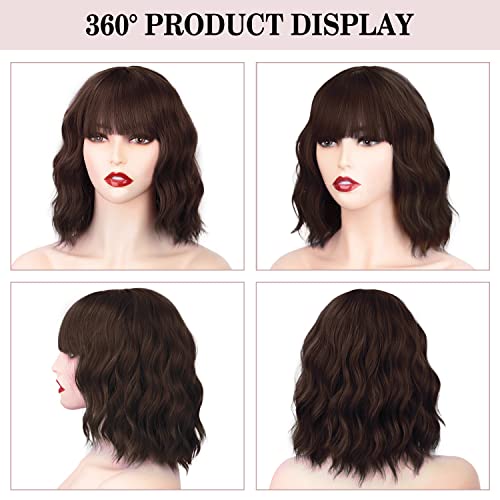 JessLab Parrucca Bob con Bang, Naturale Sintetica Parrucche Corte Ricce Resistente al Calore Parrucca da Donna Parrucchino con Frangia Estensione Capelli, Marrone Scuro (8-33)